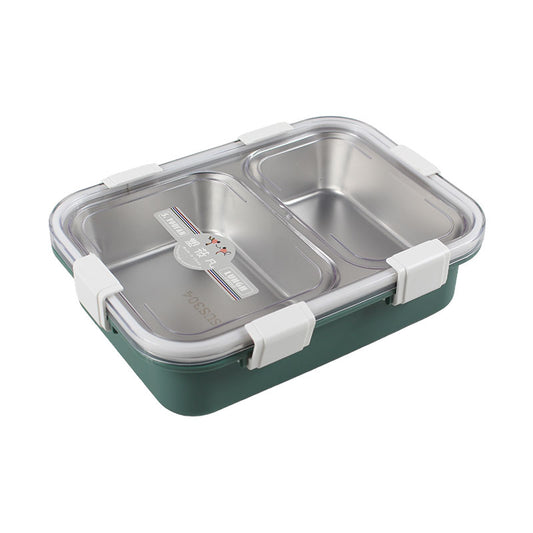 2 Partition Lunch Box Stainless Steel with Spoon & Chopstick 01975