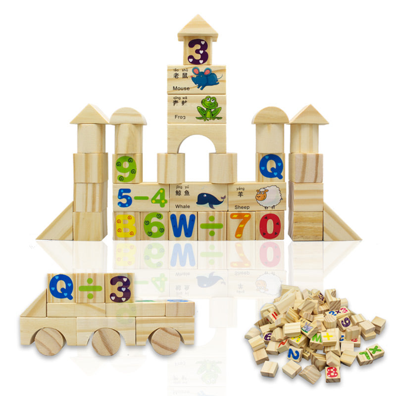 110 Pcs Wooden Building Blocks-Alphabet & Number