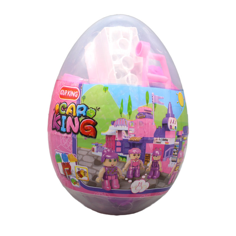 Building blocks for kids to play. There are blocks of different sizes and shapes in it. Kids will combine them to make a small house model. All the blocks are packed in an egg shape package that makes it funny and attractive for kids. It is made up of safe and non-toxic plastic. The egg size is 12 cm