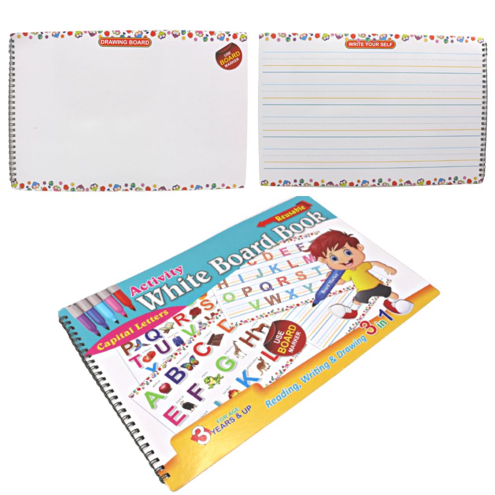 Reading, Writing & Drawing.! This is the new 3-in-1 White Board Book for kids. This book contains Capital Letters Your child will Learn, Read and Practice them by writing on the whiteboard at the Last of the book