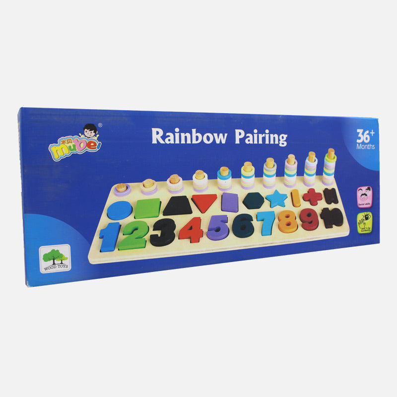 New Wooden Educational toy for kids to learn and play with. There are number blocks in it from 1 to 10 in different colors. Also have different shapes like square, circle, triangle, hexagon, etc. Engraved places for every block. There are wooden sticks-like rods of different sizes. Kids will have to place the rings in the rods according to size, it will be helpful to them in number learning. When kids pick up the block same color painted on the engraved place.