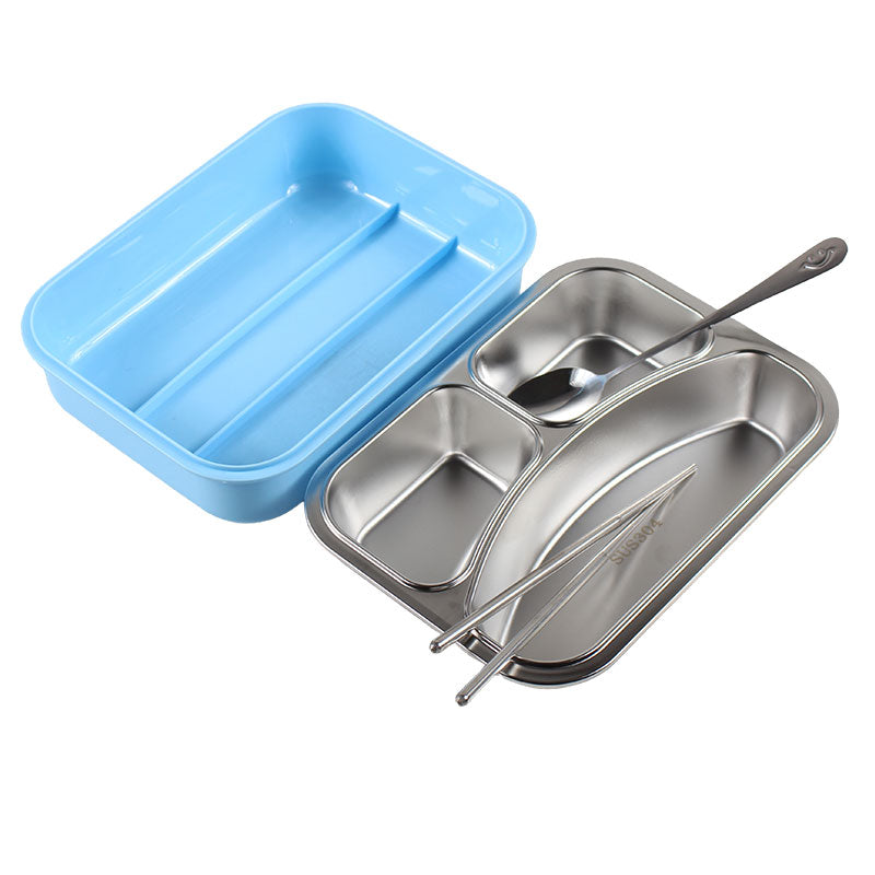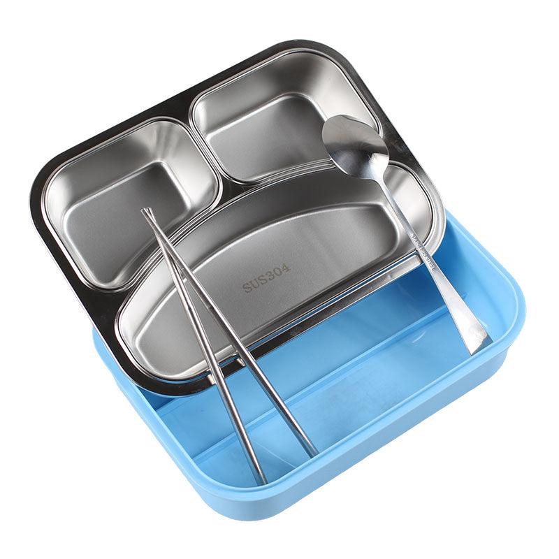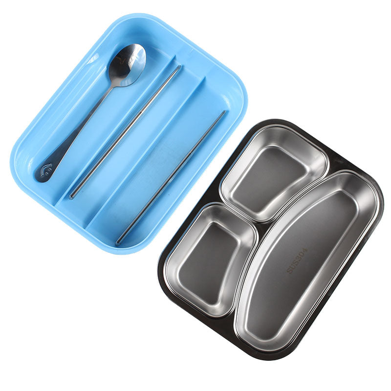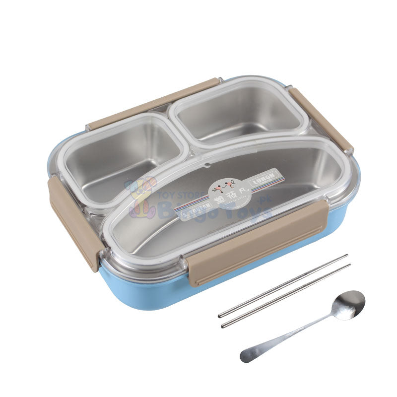 3 Partition Lunch Box Stainless Steel with Spoon & Chopstick 01974