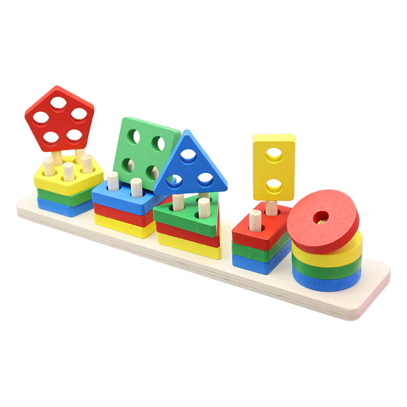 This wooden stacking toy set contains 20 colorful wooden blocks and 1 stacking wooden board. The baby blocks have 5 different geometric shapes with bright colors. It is easy to catch and hold kids’ attention and is designed to increase the baby’s ability of creativity with its perfect size