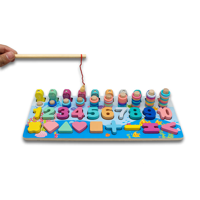 The 6 in 1 Fishing Logarithm Board is not just a great tool for young anglers, it’s also a fantastic preschool math toy for toddlers! This wooden board features six different functions that are designed to help toddlers learn about math concepts like counting, sorting, and matching.