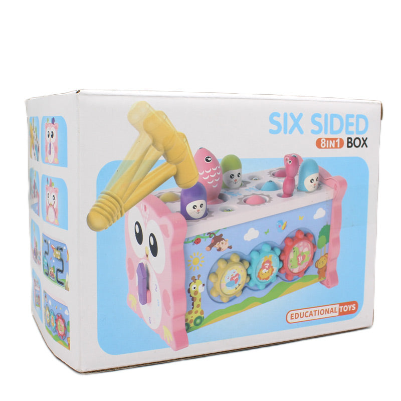 New 8 in 1 six side box for kids to learn with fun. This box has 6 sides each side performs a different function. Your child will learn about different colors, time and clock, fishing, and knocking games during his/her play. It will enhance the intelligence and cognitive ability of your kids. Its package size is 18*10.5*13 cm.