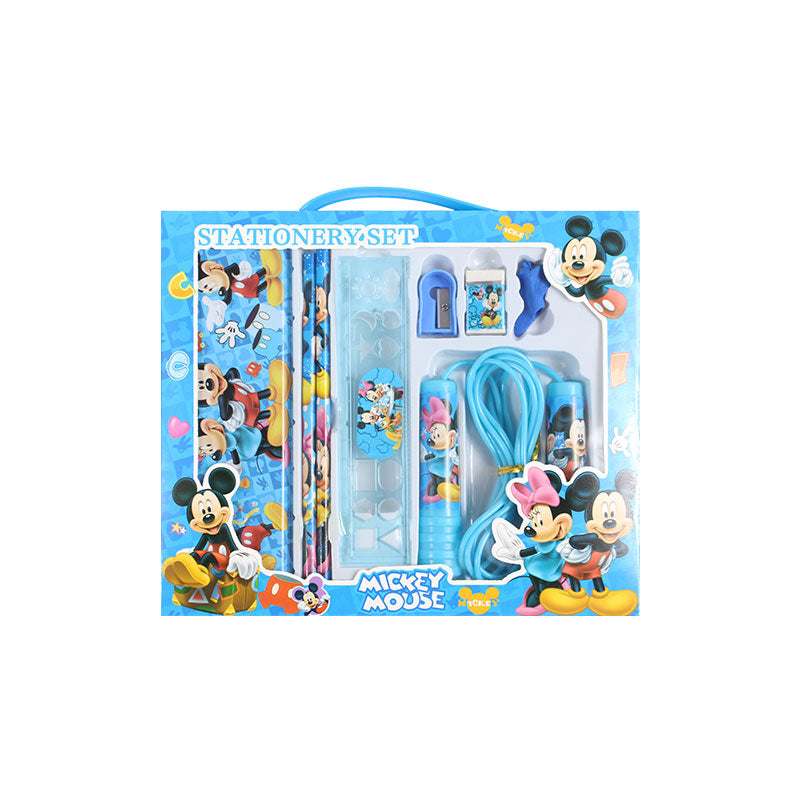 8 Pieces Stationery Set for kids – Best Gift for kids – 2 Pencils, 1 Eraser, 1 Sharpner, 1 Scale, 1 Geometry Box, 1 Jumping Rope, 1 Fish Shape Eraser.