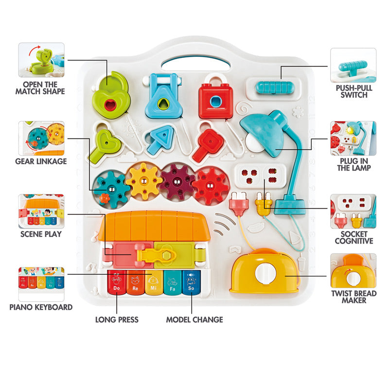 A busy board activity table is a great way to keep babies and toddlers engaged and entertained. It’s designed with different activities and features that promote hand-eye coordination, fine motor skills, and cognitive development. The Busy Board Activity Table Baby Musical Toy with Lights and Melodies takes this concept to the next level with added musical and sensory elements.