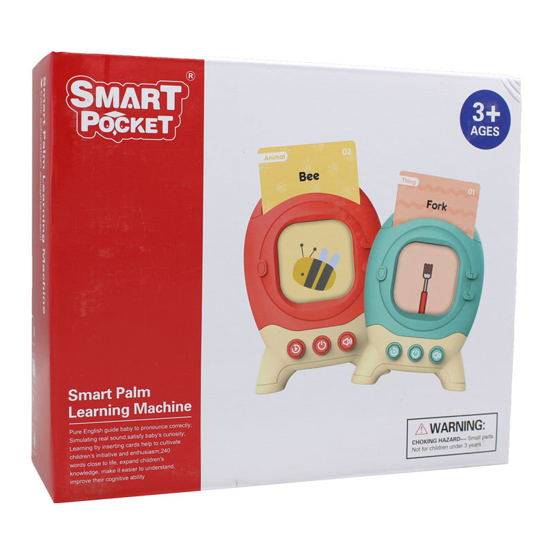 New Smart Palm Learning Machine for kids to learn with fun. This early education card machine is bright in color and rich in content, which can easily attract children’s attention and improve their concentration. This English guide helps to pronounce correctly and simulate real sounds. Its package is 20*7*17 cm. This Package includes 1 device and 120 double side flashcards