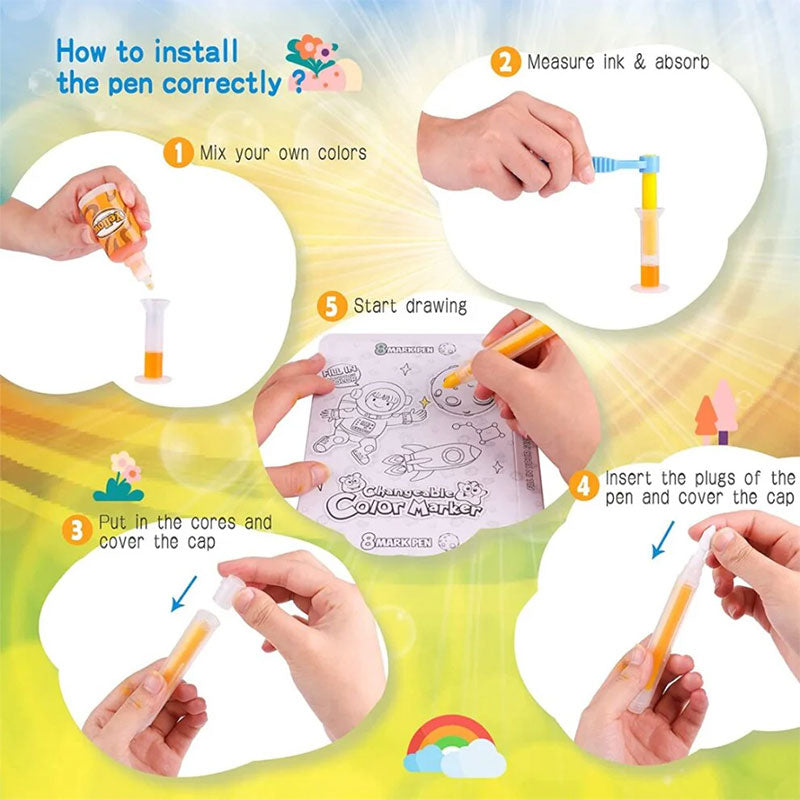 Bring artwork to life with the Fill-in Changeable Color Marker – a magical tool that adds surprise and excitement to every stroke! This unique marker allows kids to create colorful designs that shift and blend into different shades as they draw.