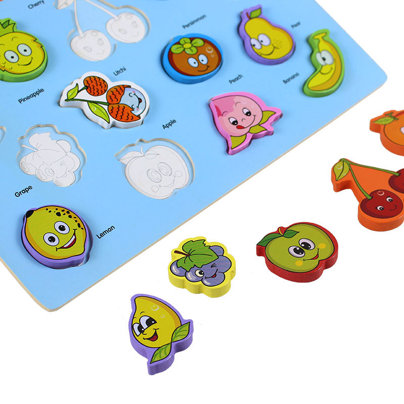 Each fruit-shaped wooden piece fits perfectly into its slot, helping kids recognize shapes, colors, and fruit names while boosting hand-eye coordination and fine motor skills. It’s an excellent early learning tool for toddlers and preschoolers, designed to support vocabulary building and memory through hands-on play.