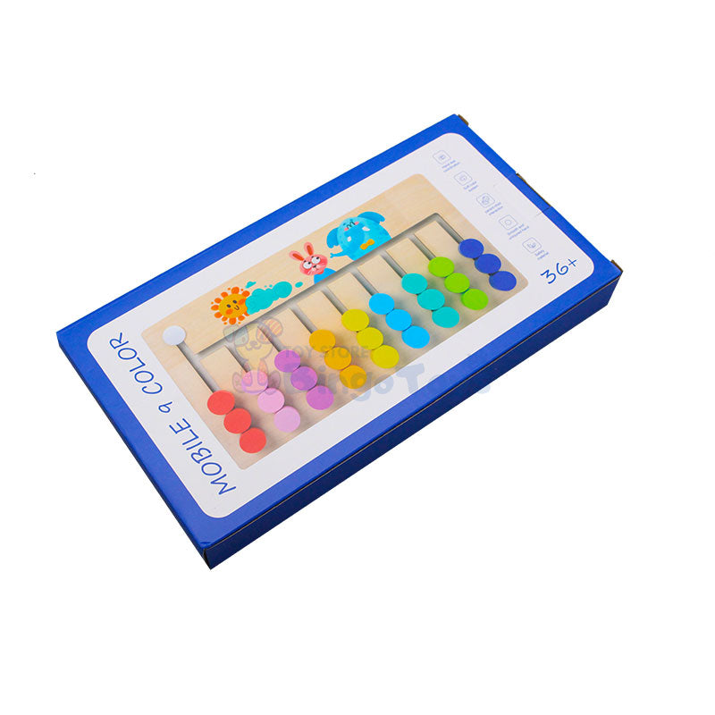 Montessori Slide Puzzle Wooden 9 Colors Game