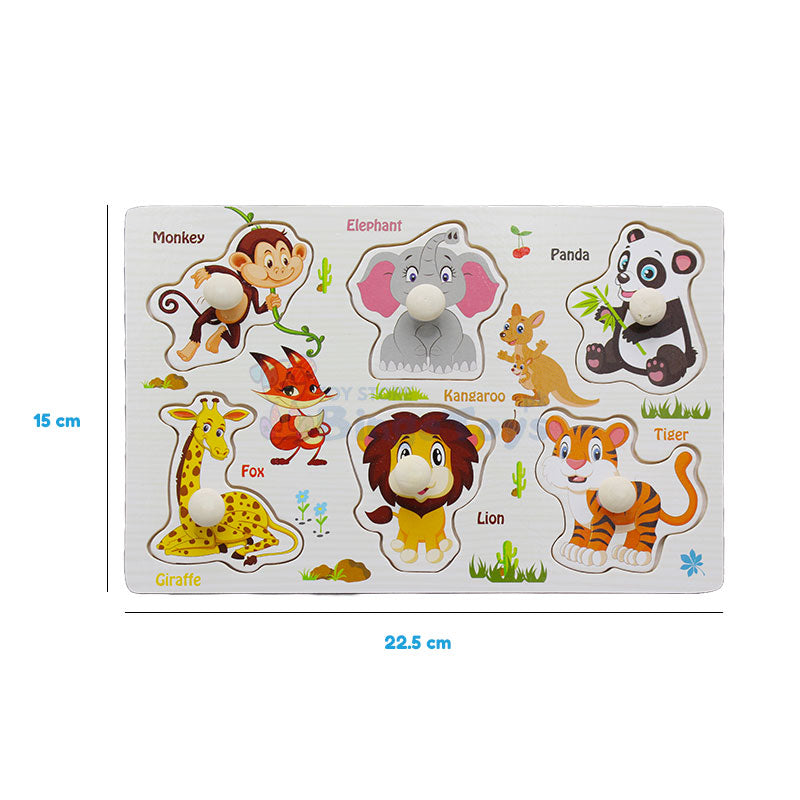 Featuring an assortment of wooden animal pegs, this puzzle board invites children to explore and match each animal to its designated slot on the board, fostering fine motor skills and cognitive development.