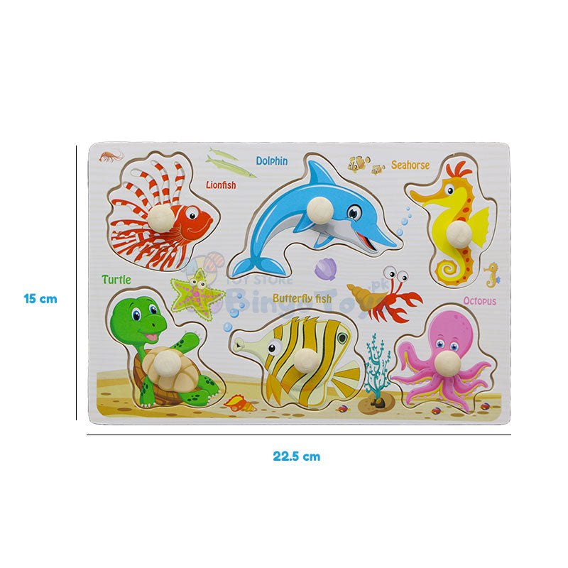 Montessori Wooden Sea Animals Peg Puzzle Board (1590F)