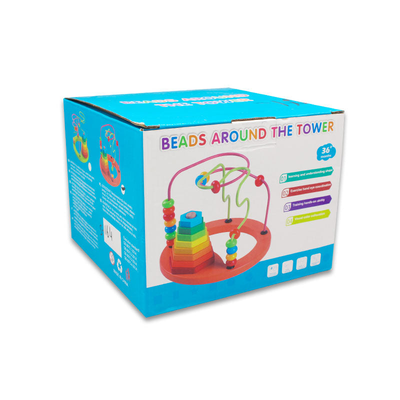 New Wooden Beads Around The Tower for Kids. This educational toy enhances hand-eye coordination and hands-on ability. This wooden toy has a visual color collection that will be helpful to recognize different colors.
