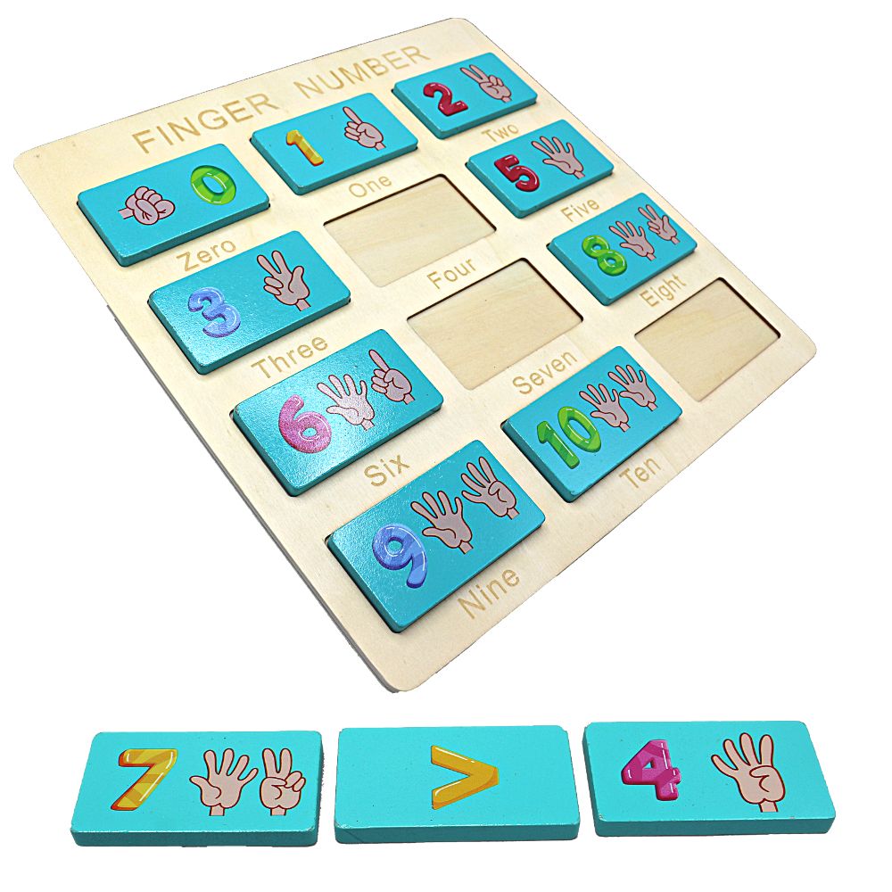 New Premium Quality Wooden Educational Toy for kids. This is a Finger Number Counting Board that helps kids to learn numbers by counting them using his/her fingers. There were number blocks with finger signs. The number’s name is written on the board and every block size is the same so the child has to locate the number block in the respective number’s name.