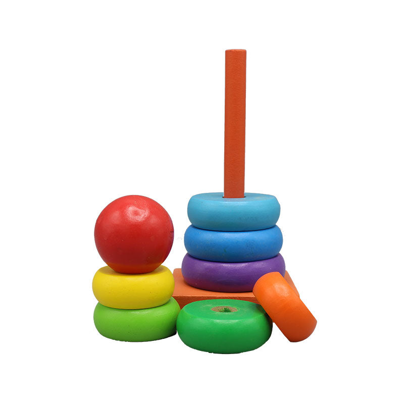 Rainbow Tower 8 Blocks is an excellent early education wooden toy for kids. This toy has eight brightly colored blocks, each with a different shape, size, and color, that can be stacked together to create a tower. The blocks are made from high-quality wood and painted with non-toxic, child-safe paint, making them safe for children to play with.