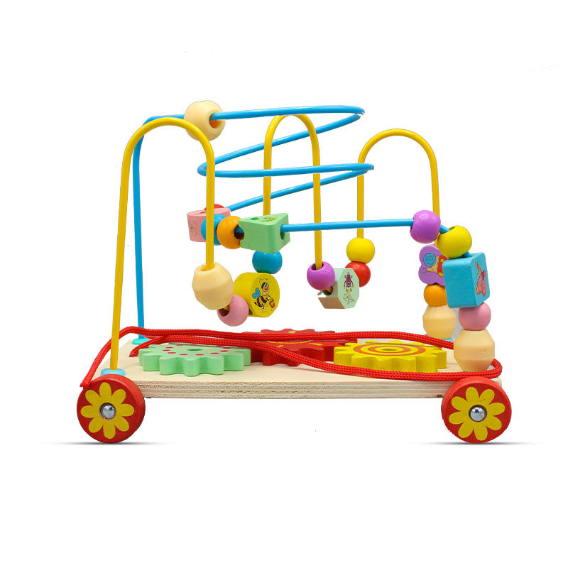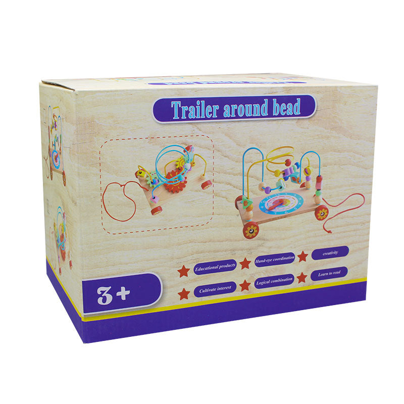 A wooden trailer around bead is a classic toy that has been popular with kids for generations. This simple yet engaging toy consists of a wooden trailer that is attached to a string or rod, with colorful beads strung onto the rod. The trailer can be pulled around by the child, while the beads slide around the rod, creating a mesmerizing and visually stimulating experience.